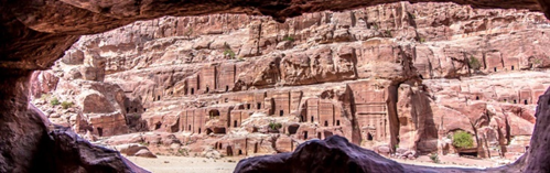 the Nabatean Kingdom. Accessed via a long narrow canyon, it contains tombs and